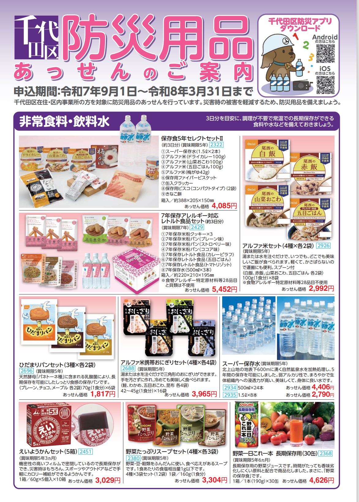 防災用品あっせんパンフレット(千代田区ホームページ)をご覧ください。