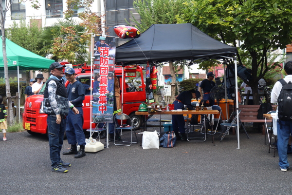 ○神田消防署展示ブース:消防服とヘルメットを被って、消防車両に乗り記念撮影ができました📸