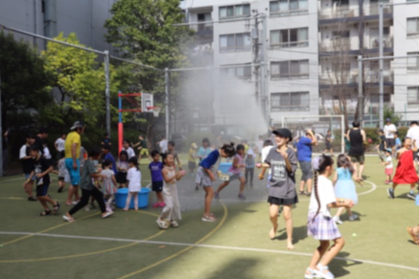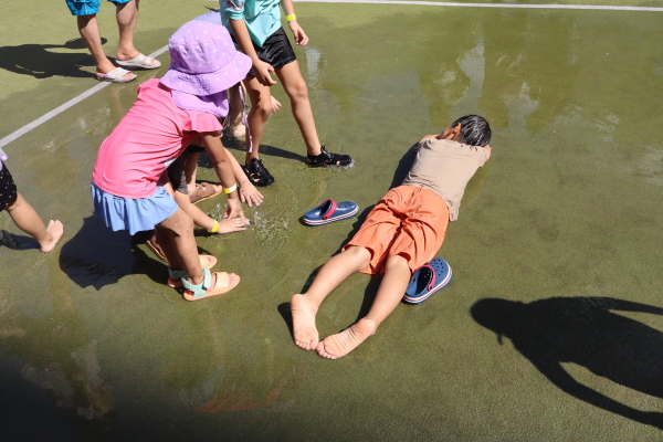 当日は天気に恵まれ、青空が広がり気温は31度、水遊び日和となりました。