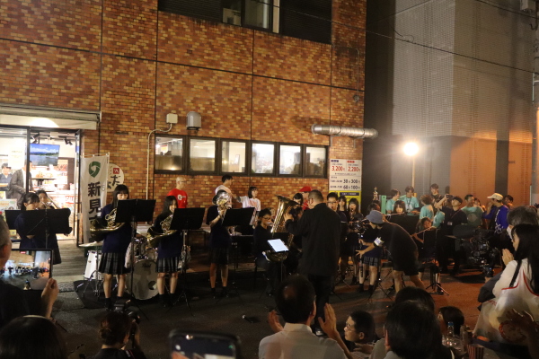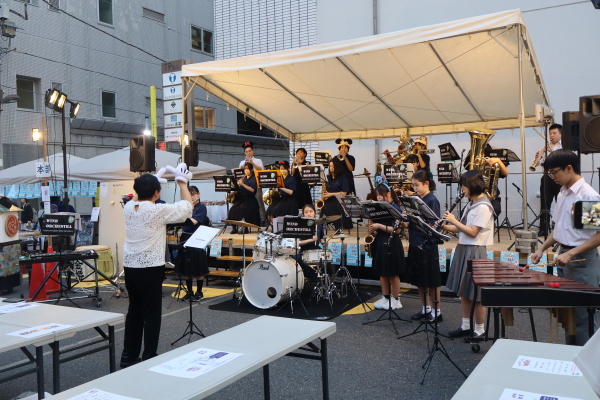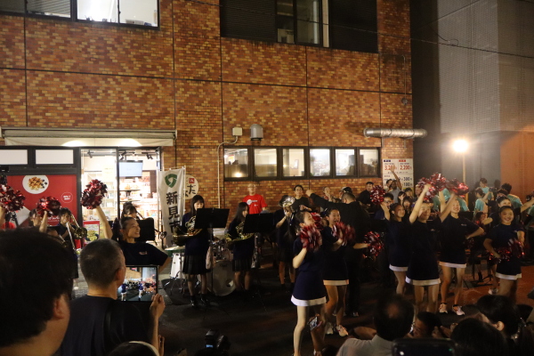 18時30分頃から、錦城学園のソングリーダー部・吹奏楽部によるパフォーマンスが始まりました。