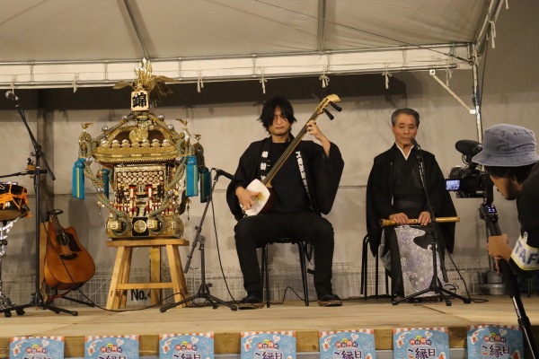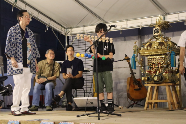 三味線を演奏してくださった藤井黎元(ふじいれいげん)さんは錦町一丁目町会の藤井町会長のご子息で、三味線におけるコード理論を初めて確立されたパイオニア。国内外の邦楽業界で注目を集めております。