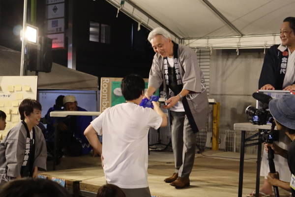 登壇され皆さんからお祝いをされた方には、堀井町会長からプレゼントがありました🎁