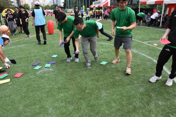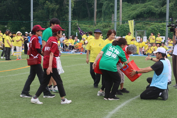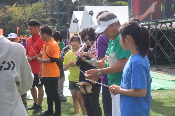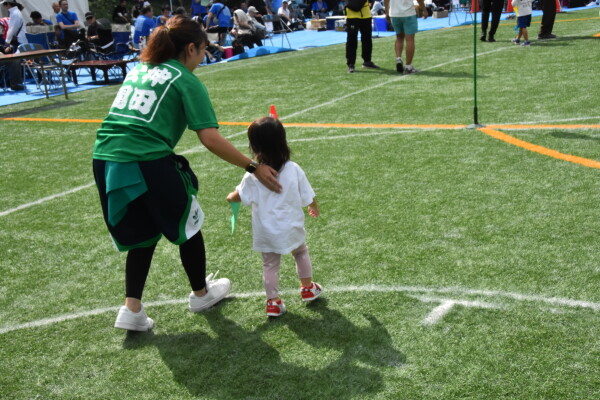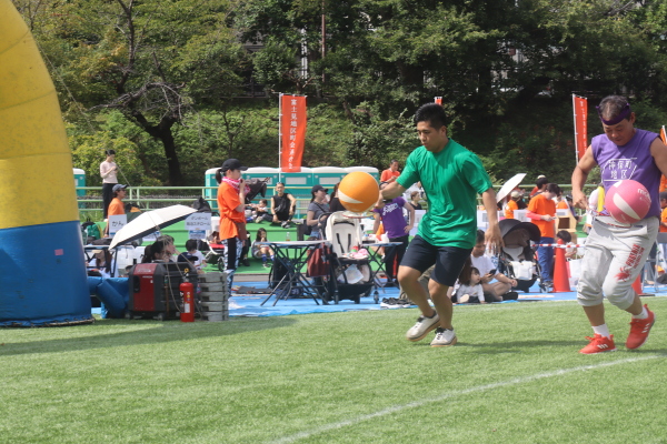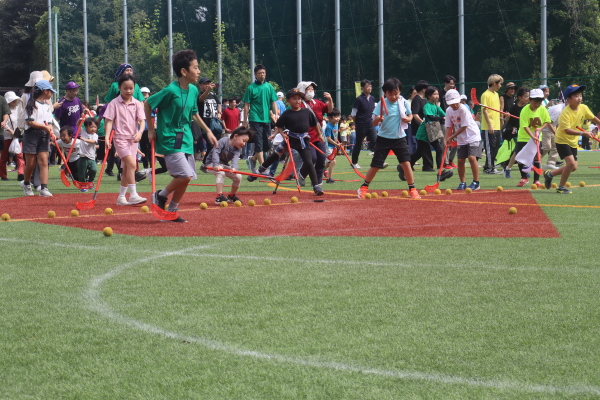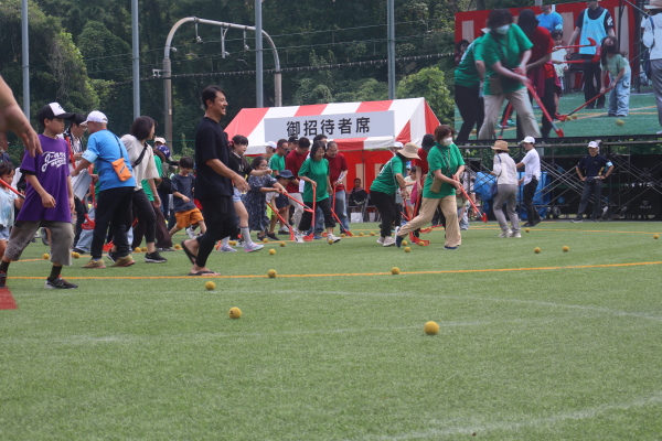 区民体育大会には、得点が付かない種目もあります。"ふれあいスポーツフェスタ"の名のとおり、子どもから大人まで誰でも楽しんで参加できるオープン種目です。