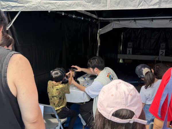 今年の体育大会には、五城目町・嬬恋村の物産ブースや、デフ射撃の体験コーナー、工作ワークショップも出展。