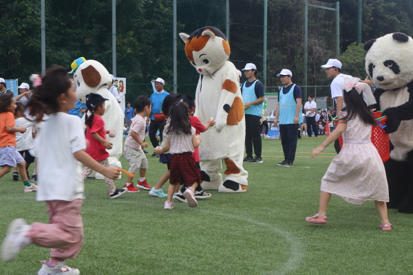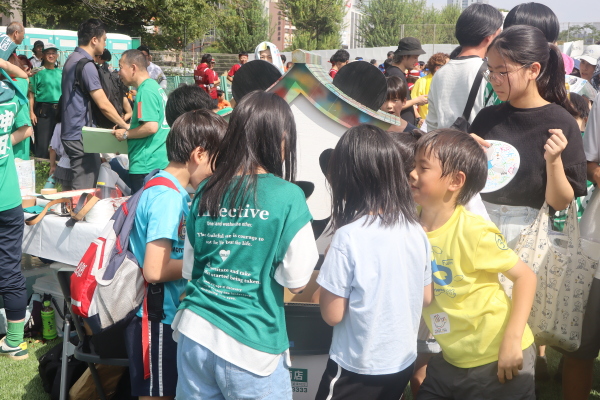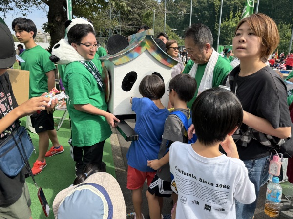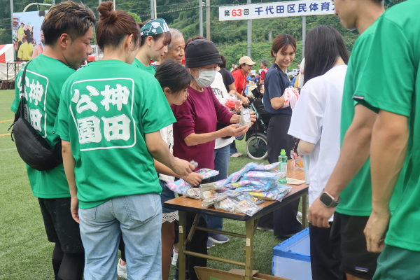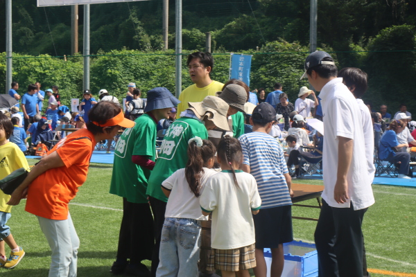 暑い中、区民体育大会にきてくれた子ども達にお菓子の掴み取りをプレゼントしてくれました。