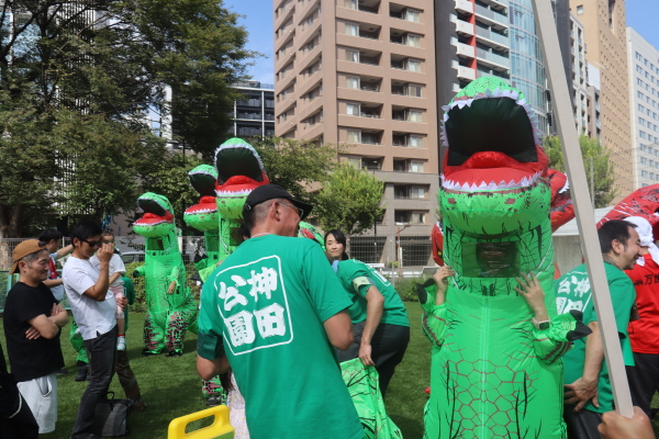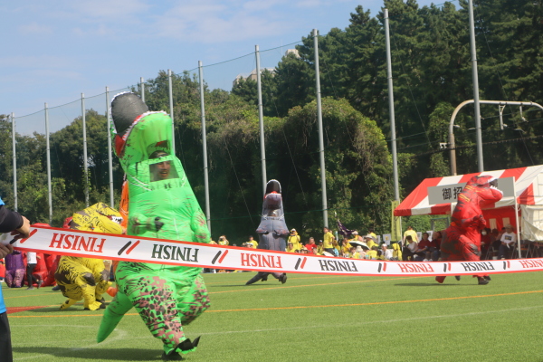 今年、初めての試みとなるこのレースでは、各連合町会出身のティラノサウルスが速さを競って駆け抜けます。