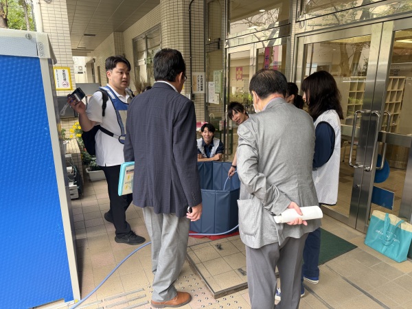 今年は防災に関する講座を受けた後、区職員による実動訓練にて、簡易的に開設された避難所の様子を見学しました。